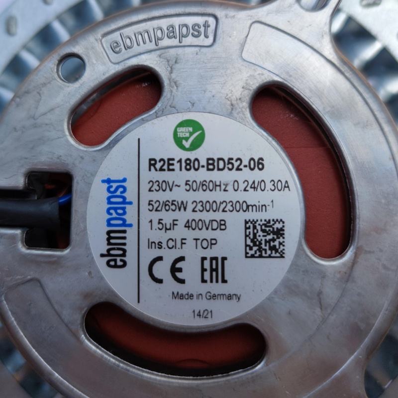 Ventilador Centrífugo Industrial ebmpapst R2E180-BD52-06 de Bajo Consumo, con Velocidad Ajustable, Silencioso, para HVAC y Refrigeración
