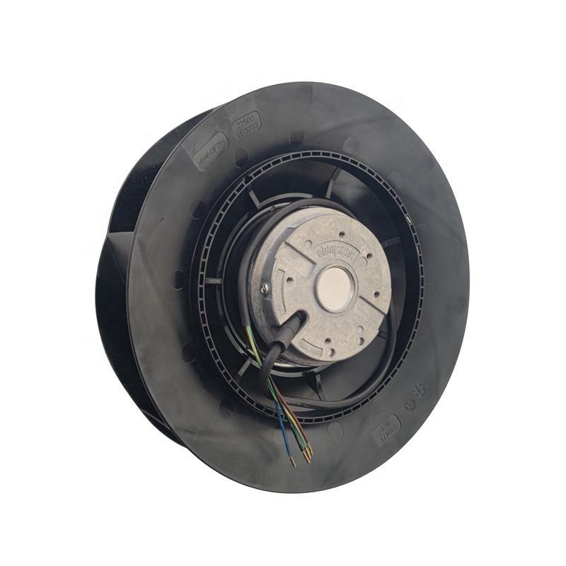 Ventilador centrífugo industrial de CA para refrigeración por conducto de escape de bajo ruido, modelo R2E225-RA92-48 de ebmpapst.