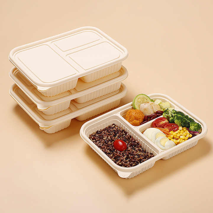 Fiambrera desechable de microwava biodegradable, compartimento múltiple ecológico, con tapa