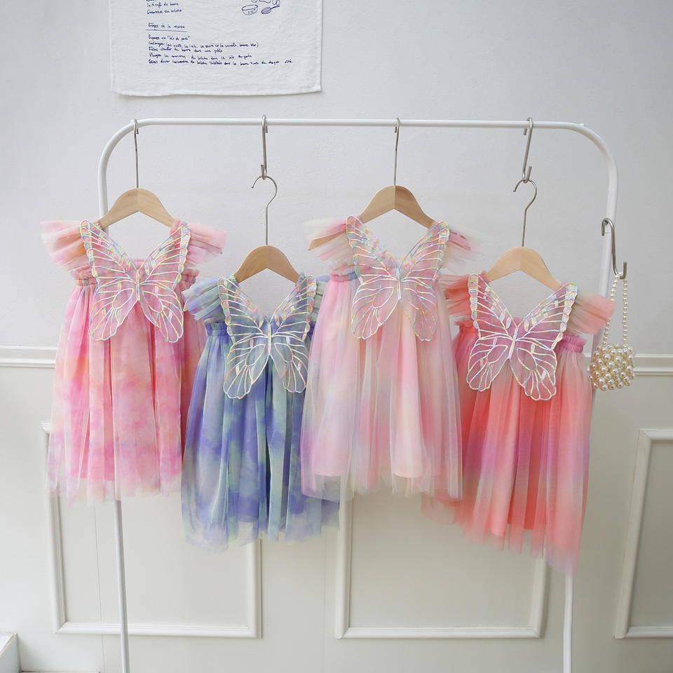 Vestido de Princesa de Estilo de Cuento de Hadas con Encaje de Seda para Niña, con Diseño de Vestido Abullonado sin Tirantes, Alas de Arcoíris y Falda de Red