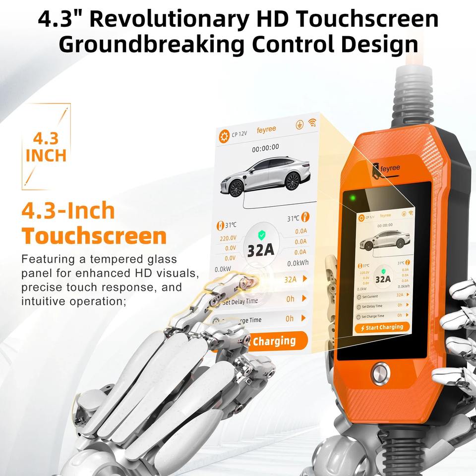 Nombre del producto:Cargador portátil para vehículos eléctricos con pantalla táctil de 4.3 pulgadas y control inteligente mediante aplicación WiFi