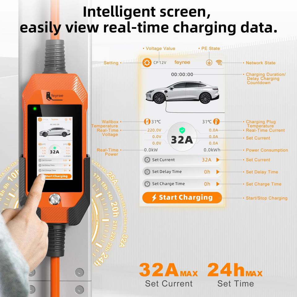 Product name:Portable EV charger with 4.3 inch touch screen smart wifi APP control