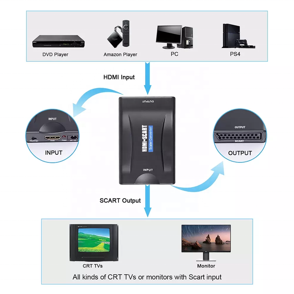 for HD TV DVD for Box STB Plug and Play with usb cable1080P HDMI To SCART Video Audio Upscale Converter Adapter