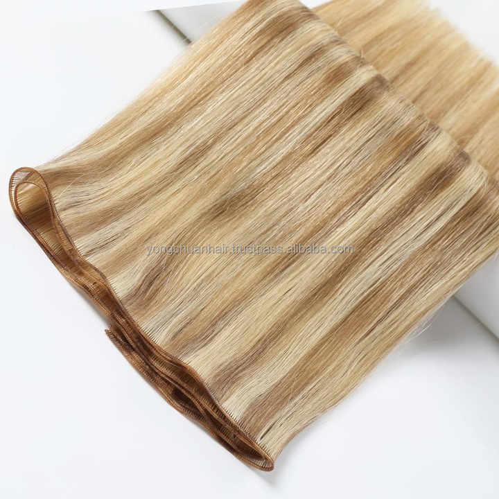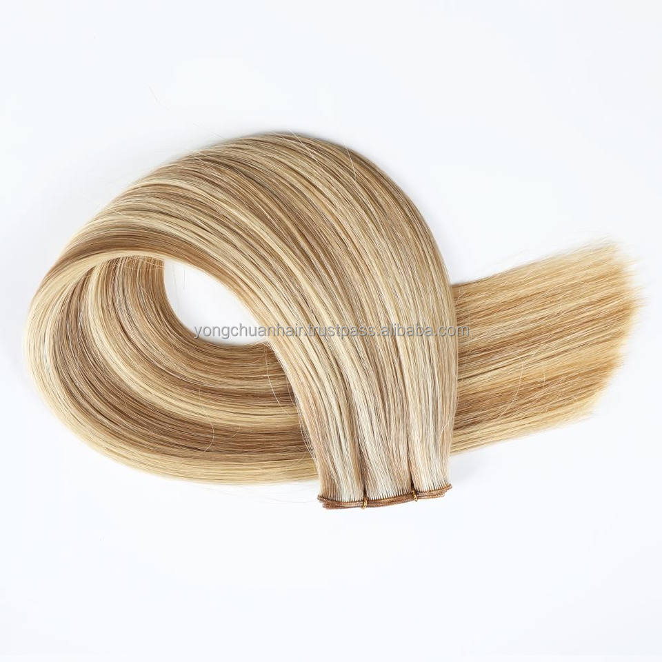 Genius Luxury 50g Extensiones de cabello ondulado del cuerpo Rizado completo Venta al por mayor Trama Doble dibujado a mano atado Cabello humano ruso