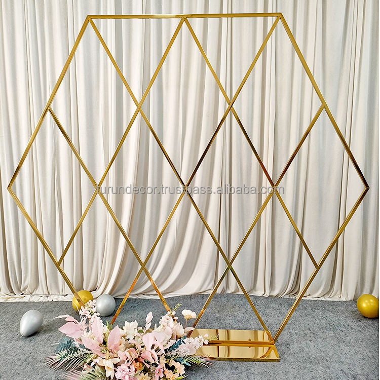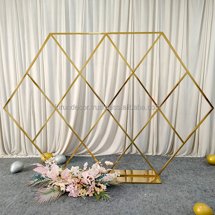 Marco de fondo Hexagonal de acero inoxidable grande personalizado furun para decoración de bienvenida de arco de boda
