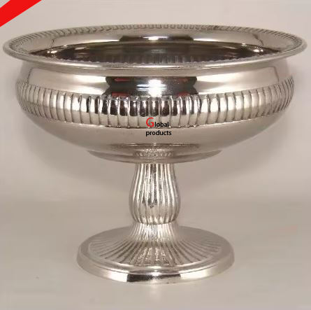 Tazón de servir con bordes de diseño de acero inoxidable y metal con acabado plateado de gran calidad para restaurante y bar de hotel