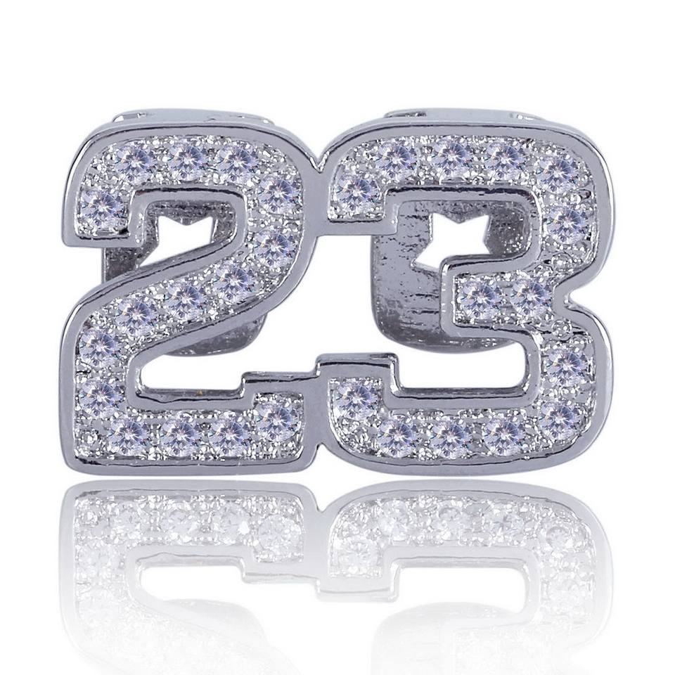 Grillz para dientes con microincrustaciones de circonita, diseño de bracket dental número 23, en oro y plata, estilo Hip Hop, unisex, para uso diario.