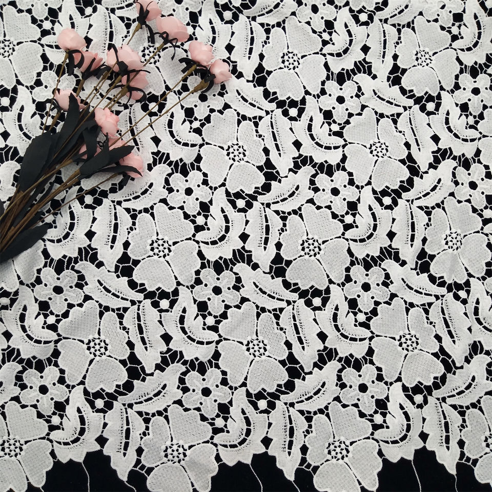 Elegante tela de encaje de margaritas de guipur blanco para bodas Elegante tela de encaje de guipur