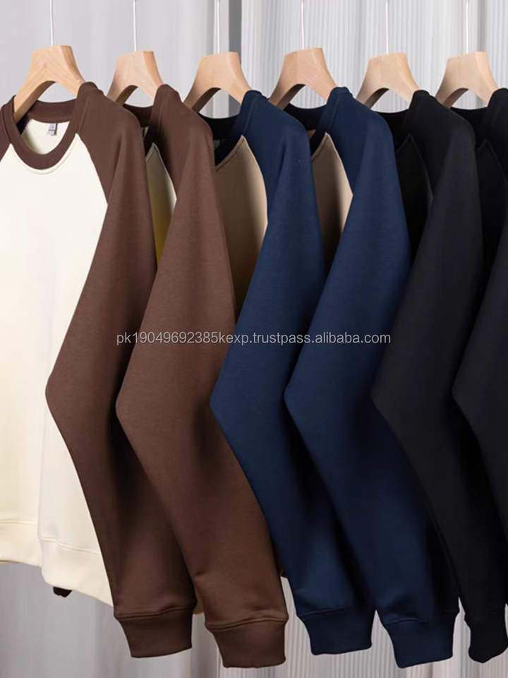 Sudadera de Cuello Redondo con Mangas Raglán de Dos Tonos para Hombre, Sudadera Informal, Cómoda y Básica
