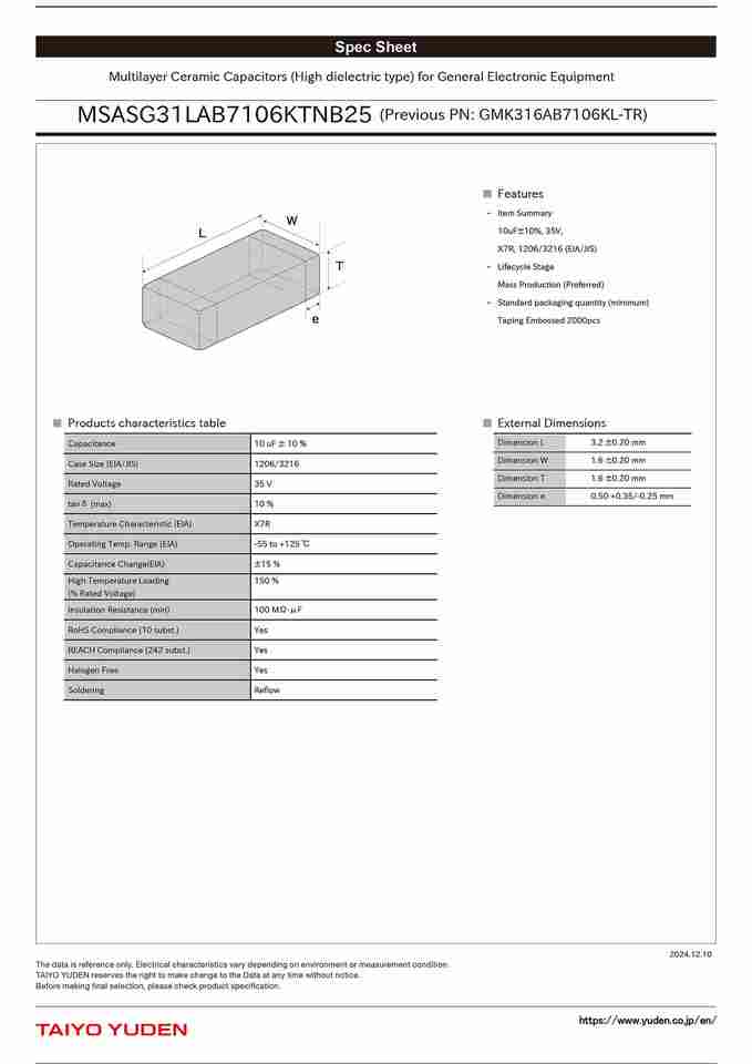 MSASG31LAB7106KTNB25 GMK316AB7106KL-TR