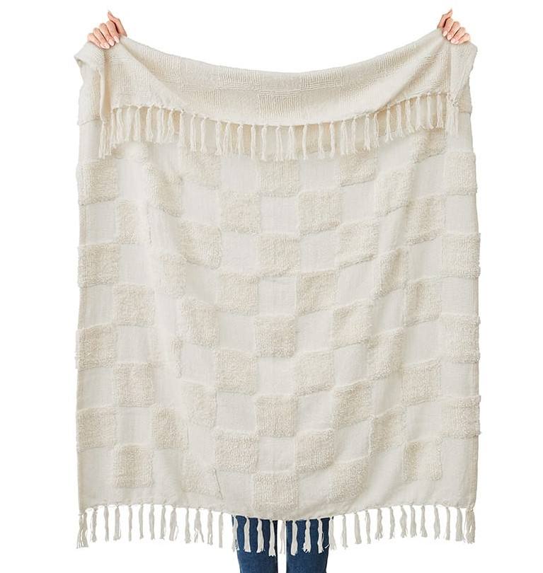 Manta de Algodón Hecha a Mano Estilo Boho con Borlas | Manta Decorativa para Sofá | Manta Ligera Tejida