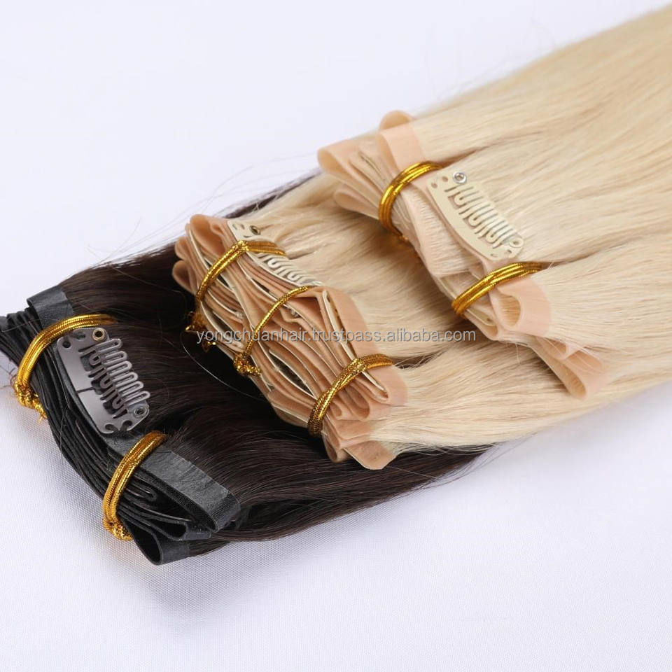 Invisible Curly Raw Blonde Yaki Virgin Seamless Pu Lace Human Straight Kinky Clip en extensiones de cabello chino 100% Real