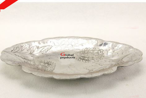 Bandeja de servicio de acero inoxidable con acabado plateado de forma irregular para restaurante y bar de hotel