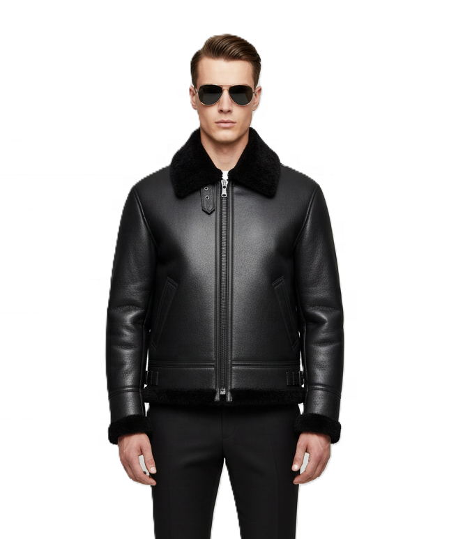 Chaqueta para Hombre de Piel de Oveja 2026, Chaqueta de Cuero de Borrego para Hombre, Estilo Bomber Aviador de Alta Calidad con Mangas Largas
