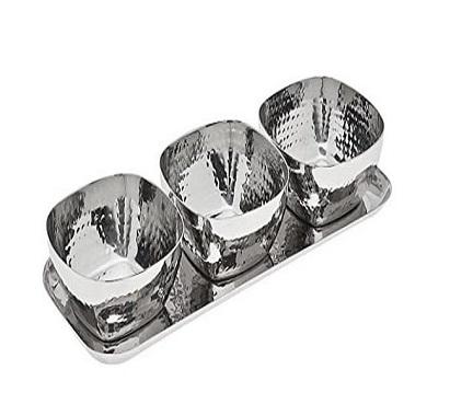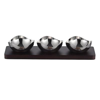 Tres cuencos japoneses de acero inoxidable para servir, bandejas tradicionales hechas a mano para café, té, cuencos de Metal al por mayor