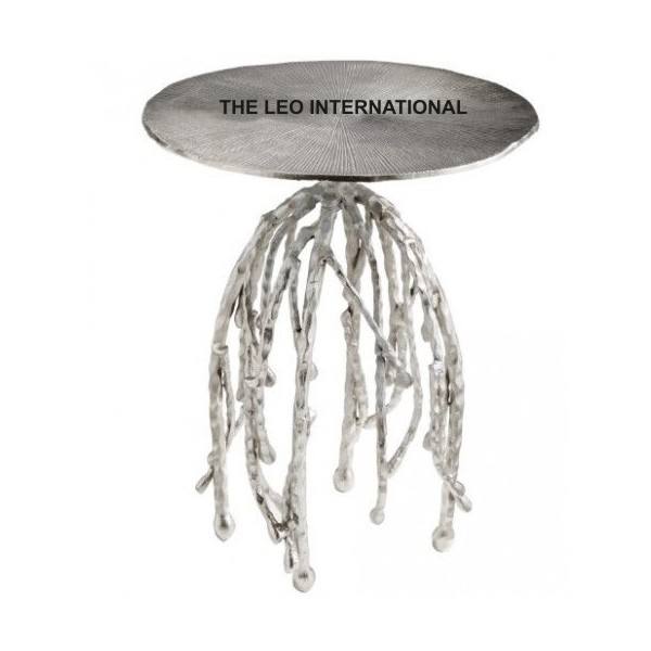 Mesa Auxiliar de Aluminio Plateado con Diseño de Medusa, Mueble Moderno de Lujo para Sala de Estar