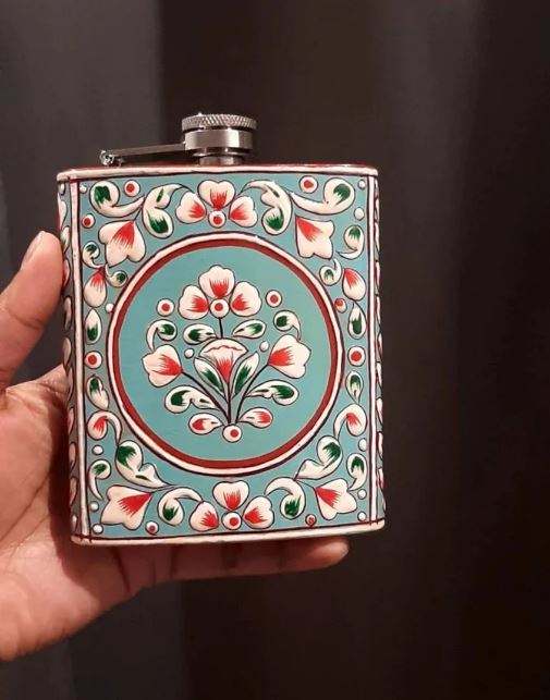 King Internacional-frasco de acero inoxidable para whisky, 6oz, con cuero, con embudo de cobre
