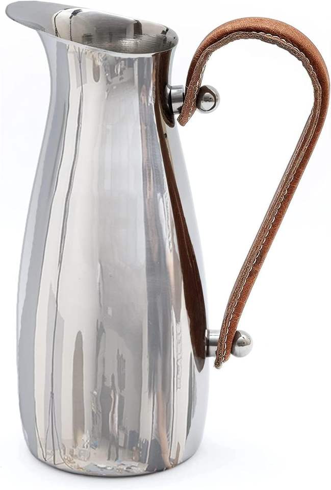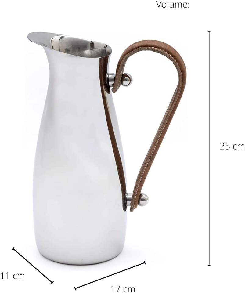 Accesorios de cocina, artículos de cocina, gran venta de jarra de agua inoxidable con colador táctil de cuero, jarra de agua con mango de metal