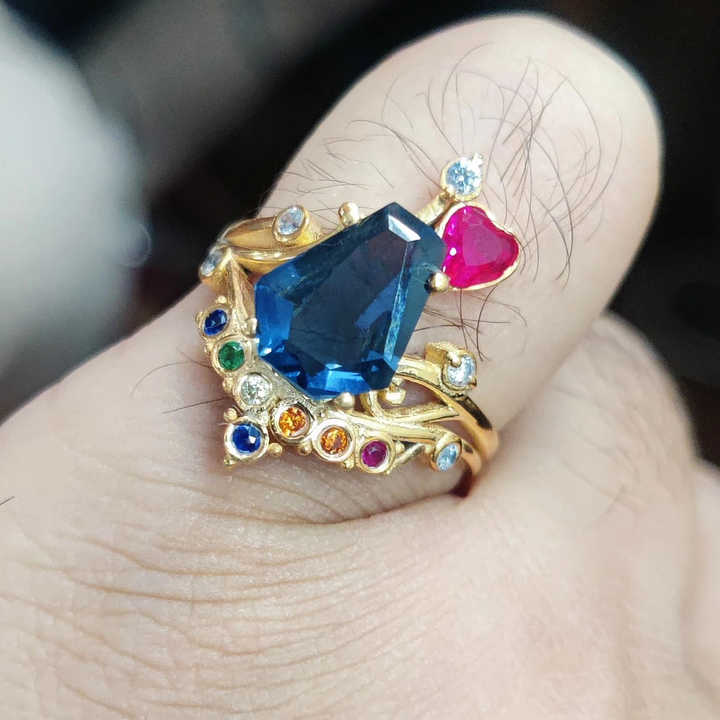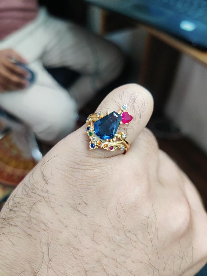 Anillo de compromiso minimalista de zafiro azul creado en laboratorio, joyería fina, diseños de anillos de piedra de zafiro chapados en oro de 14K para boda de mujer