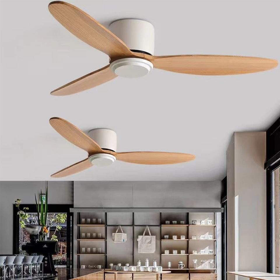 Ventilador de techo led 52 pulgadas DC motor 3 aspas de madera maciza ventilador de techo led decorativo con luz