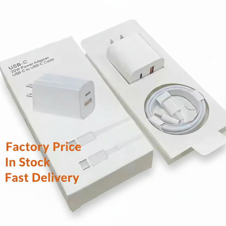 Cargador Adaptador de Corriente USB C de 20W PD con Conector de Pared para iPhone 16e 15 Pro Max 14 13 12, de Fábrica Original con Logotipo Personalizado, Enchufes para UE, Reino Unido y EE. UU.