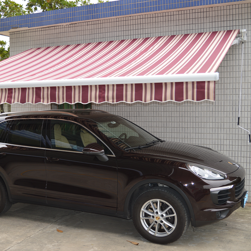 Impresión de logotipo Toldos de techo de tela de poliéster retráctiles Toldos de puerta retráctiles manuales para exteriores para negocios