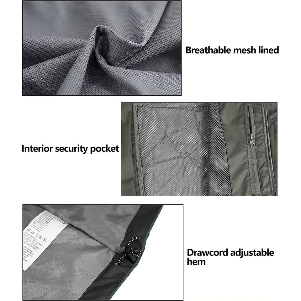 Chaqueta Impermeable con Capucha para Hombre, Ajustable, con Forro Transpirable para Actividades al Aire Libre, Estilo Urbano de Nailon Suave