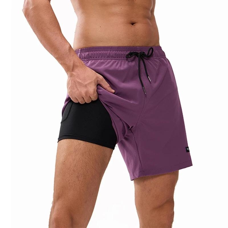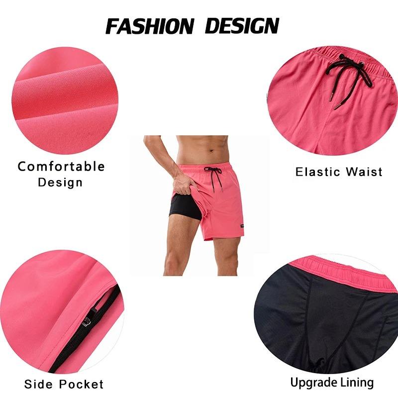 Pantalones Cortos Transpirables de Secado Rápido para Hombre, Shorts de Playa con Bolsillos y Cremallera, Forro Largo, Novedad de 2025