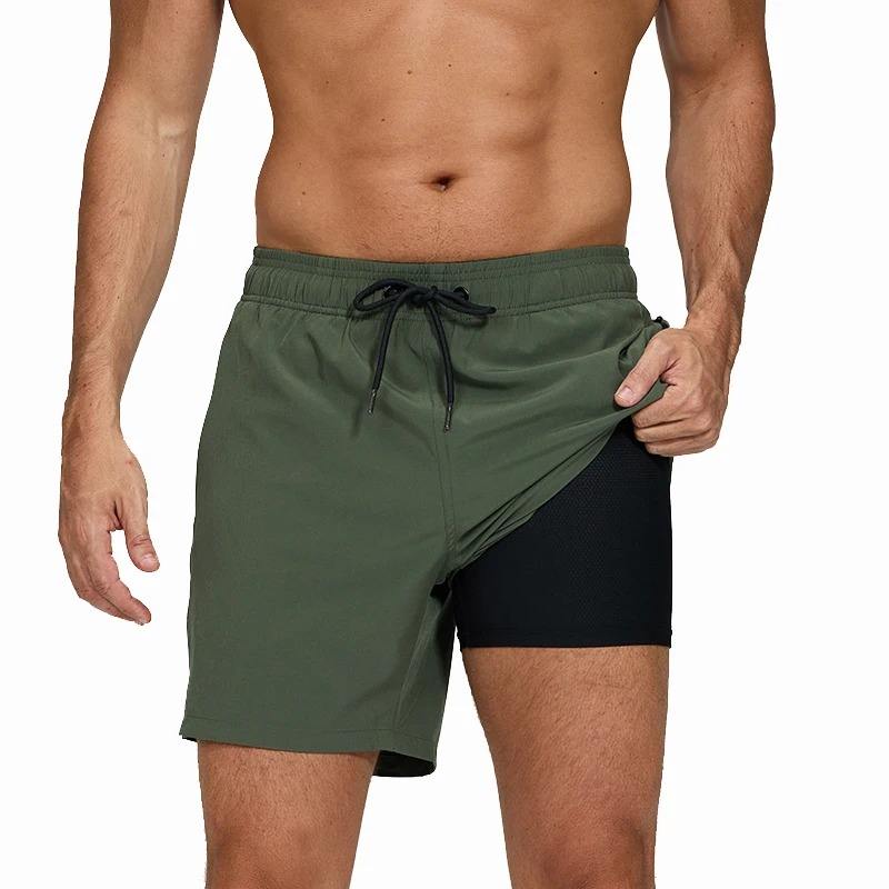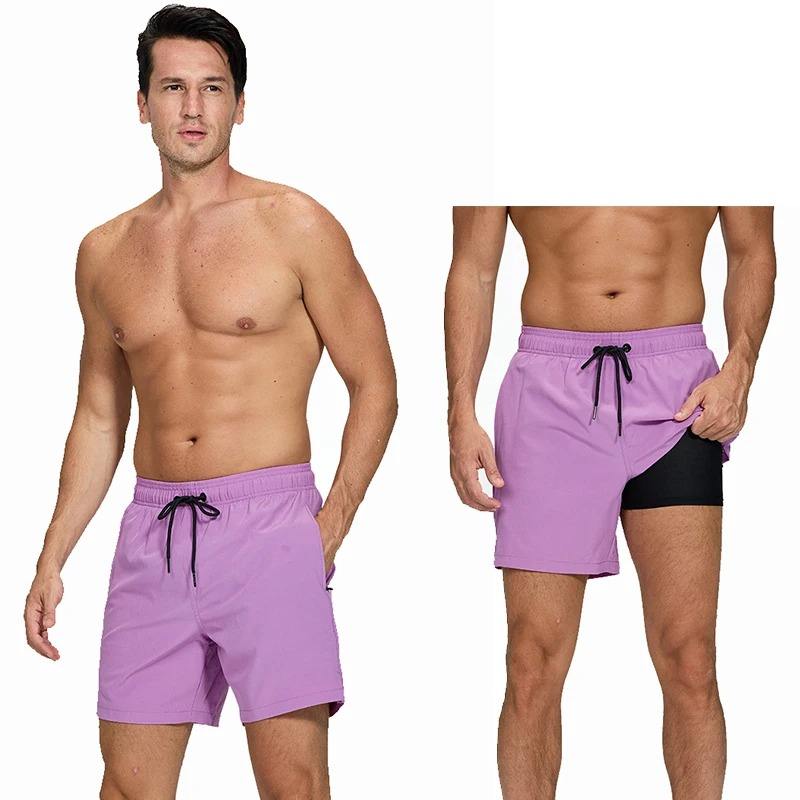 Pantalones cortos para hombre 2025, pantalones cortos clásicos de secado rápido, ropa deportiva sólida, bañadores, forro de malla para playa, Traje corto para surf