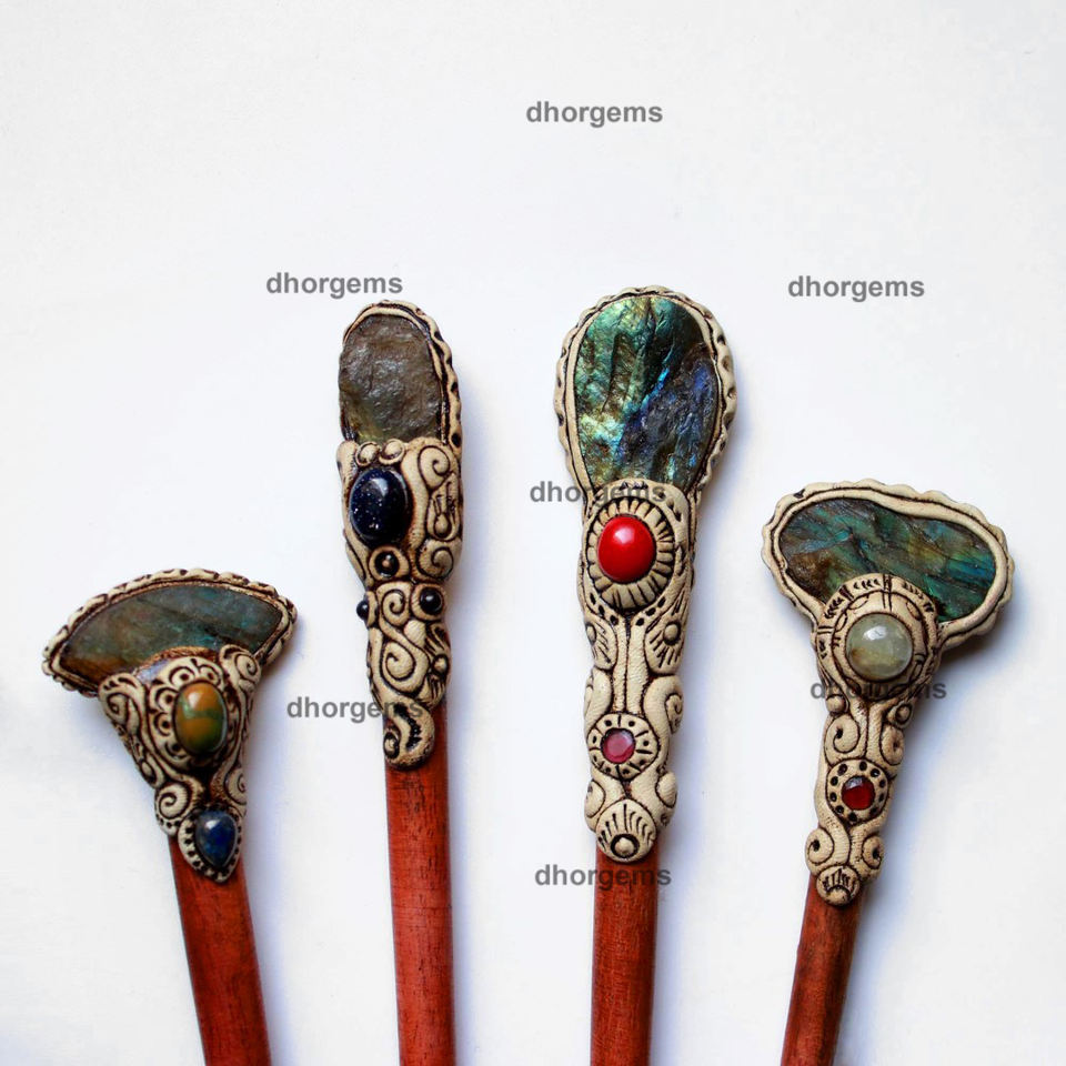 Piedra preciosa:Horquilla para el cabello de arcilla polimérica con drusa de labradorita