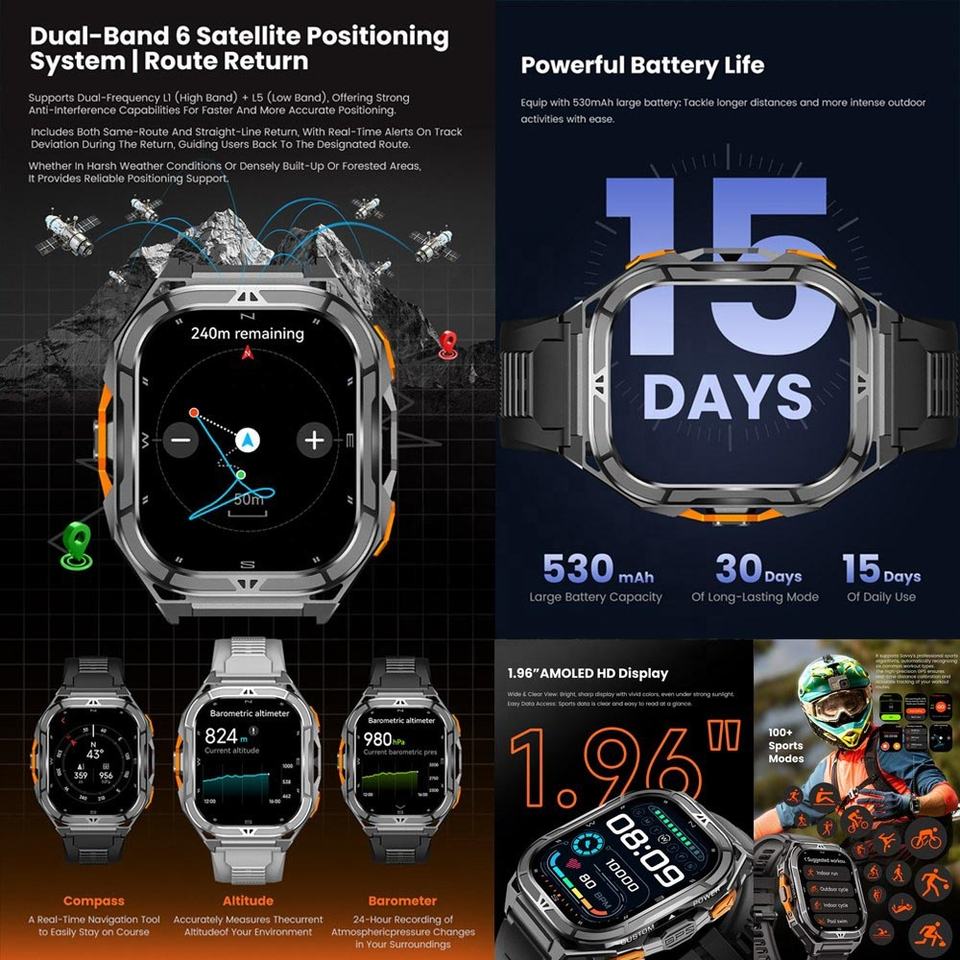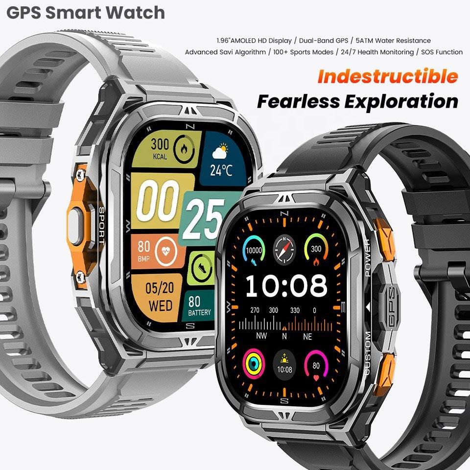 Nuevo Reloj Inteligente Resistente X5 con GPS, Monitorización de Frecuencia Cardíaca de Alta Precisión, Resistencia al Agua 5ATM y Más de 100 Modos Deportivos, Llamada SOS