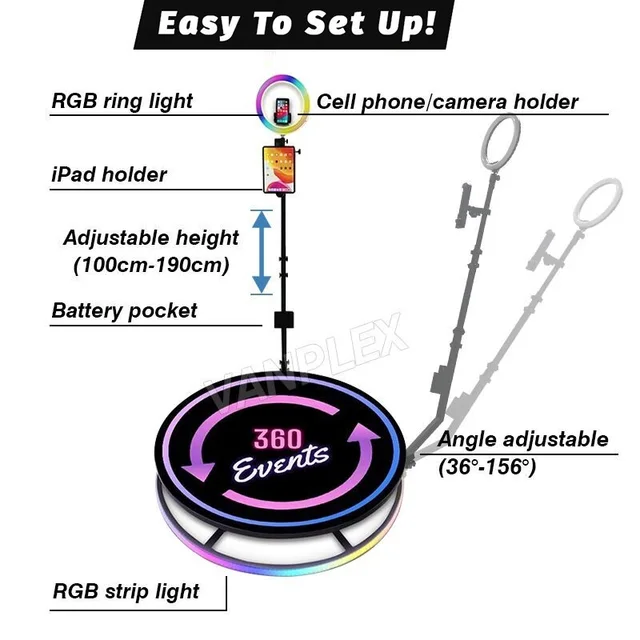 Nuevo photobooth ajustable 360 proveedor de fotomatón fabricante giratorio 369 360 fotomatón automático 2023 manual videobooth