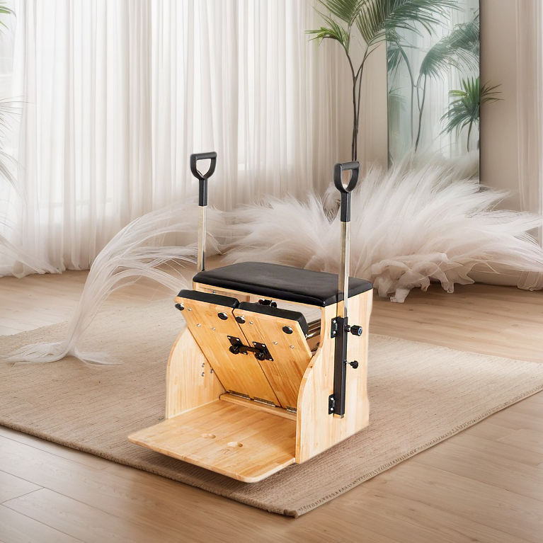 Silla de Pilates de Madera de Roble con Sistema de Resistencia de 4 Resortes Estable para Estudio y Uso Doméstico