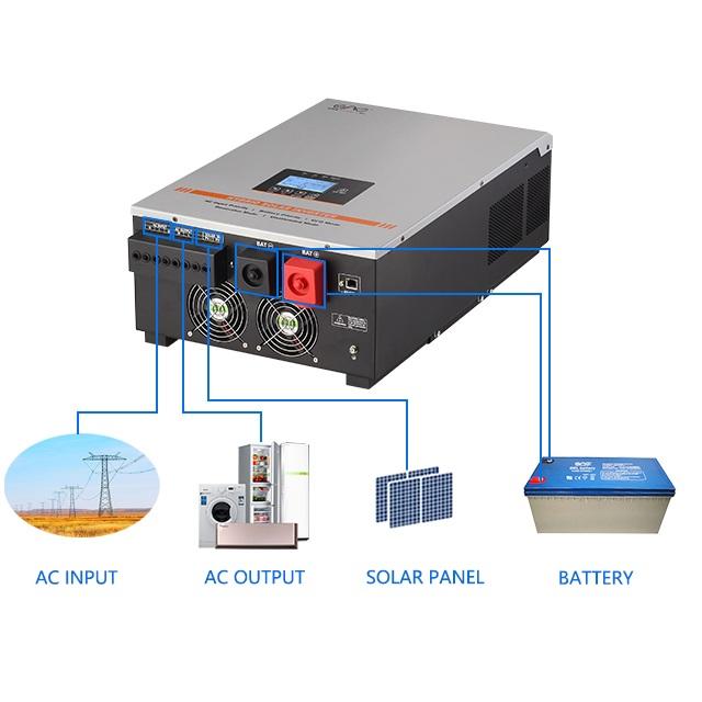 Inversor Solar Híbrido Bifásico Fuera de Red 120V 240V 5kW 6kW 24V 48V con Controlador de Carga MPPT de 100A
