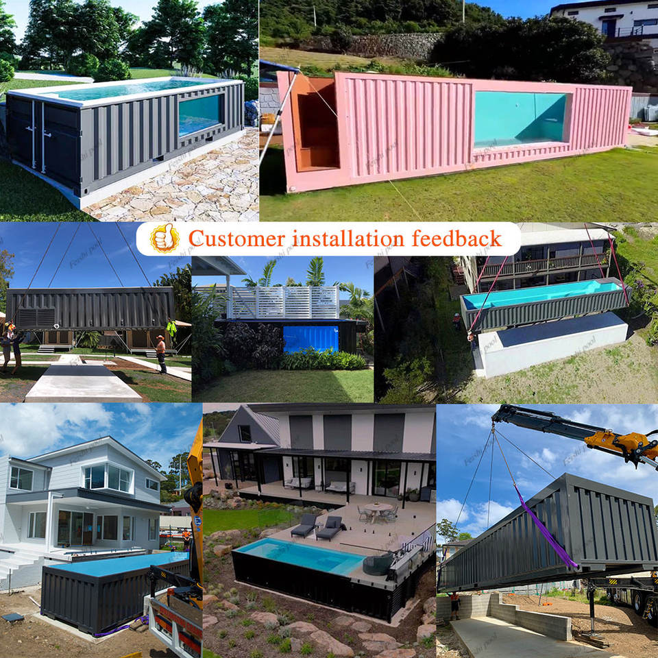 Piscina al aire libre diseño de mosaico de color blanco precio sobre el suelo fibra de vidrio 20 pies 40 pies gran tamaño envío contenedor piscina para patio trasero