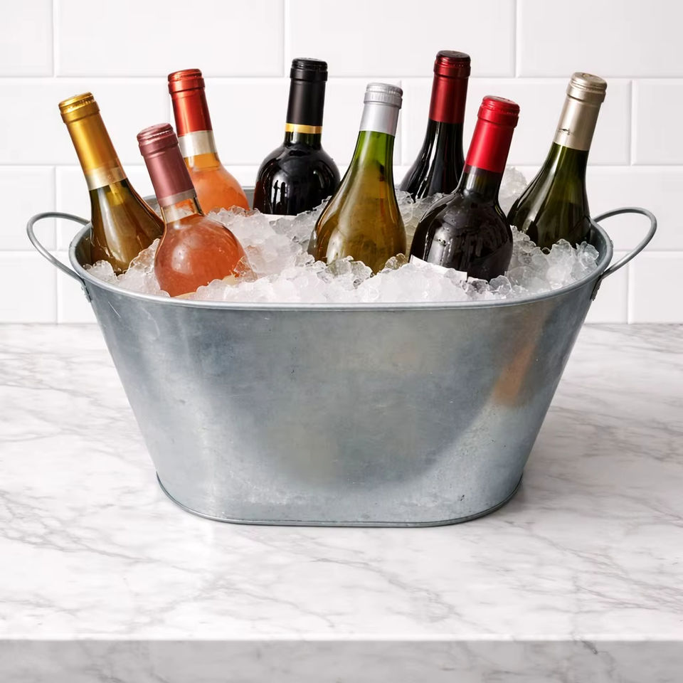 Cubo de hielo ovalado galvanizado, cubo de hielo para cerveza y vino para fiestas, enfriador de bebidas de gran capacidad, cubo de hielo de metal martillado