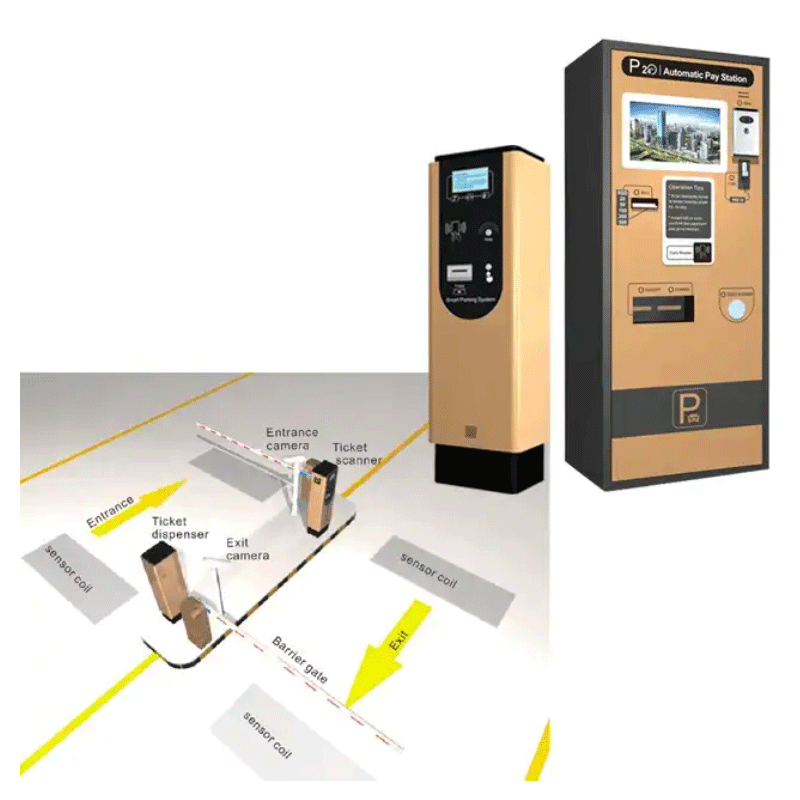 Máquina expendedora de tickets de estacionamiento con lector RFID, dispensador de tickets, barrera automática, construcción de acero inoxidable, fuente de alimentación de 110V/220V