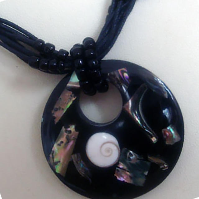 Nombre o palabras:Collar de concha de paua con cuentas.