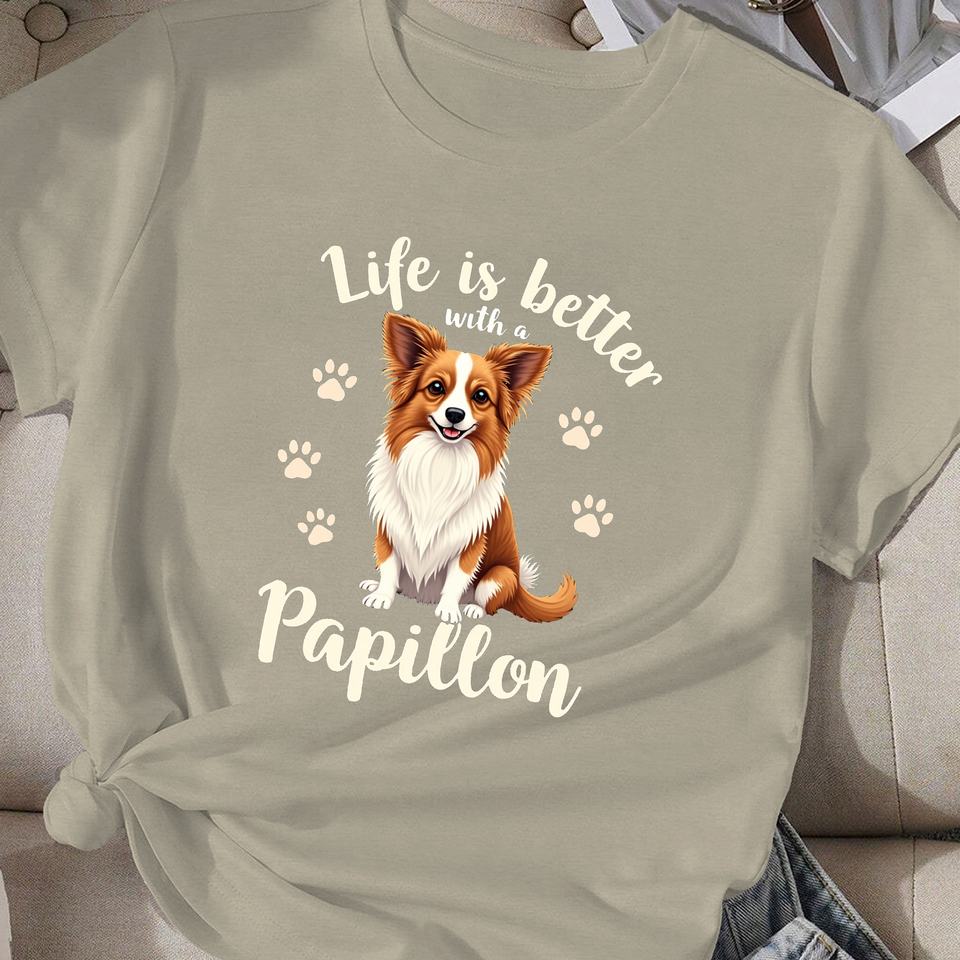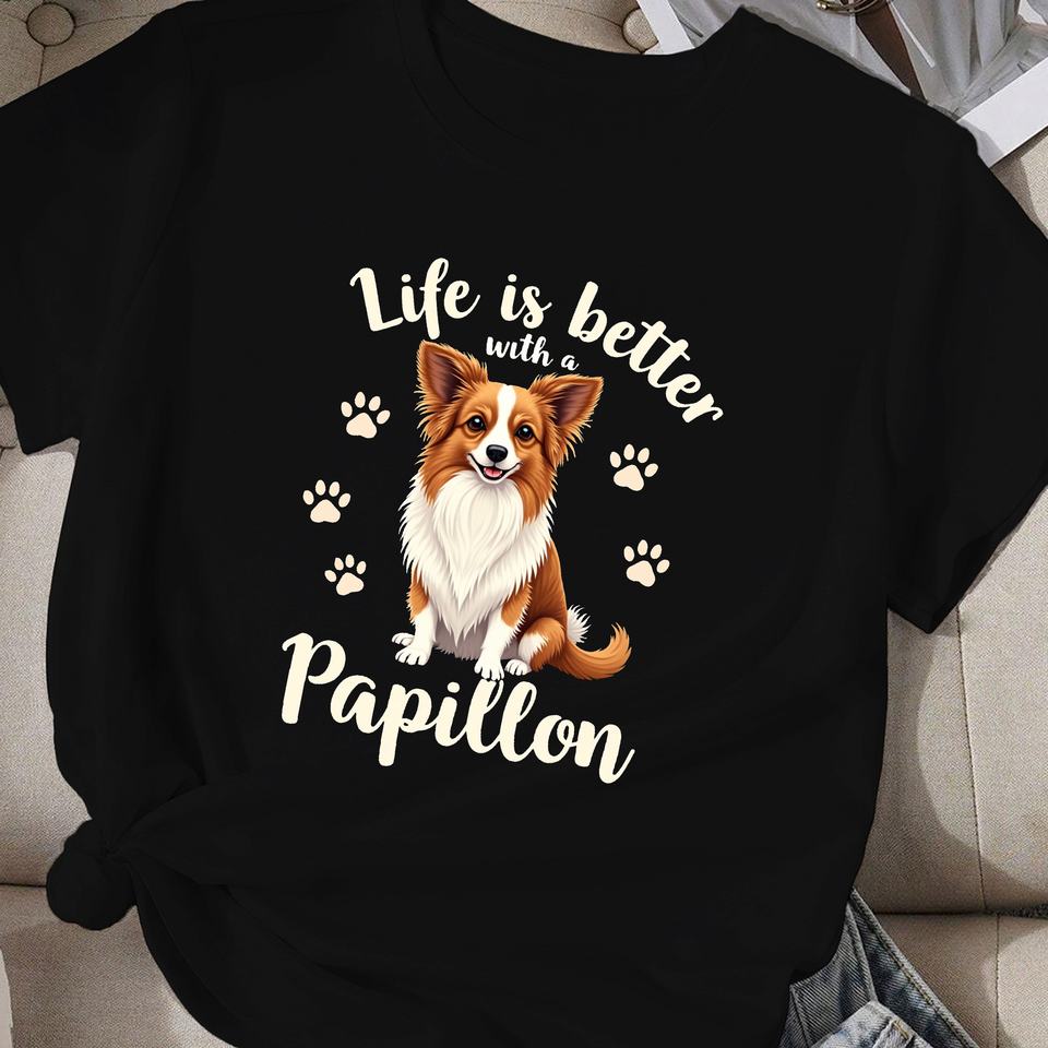 Paw Life is better con Papillon Camiseta cómoda para mujer