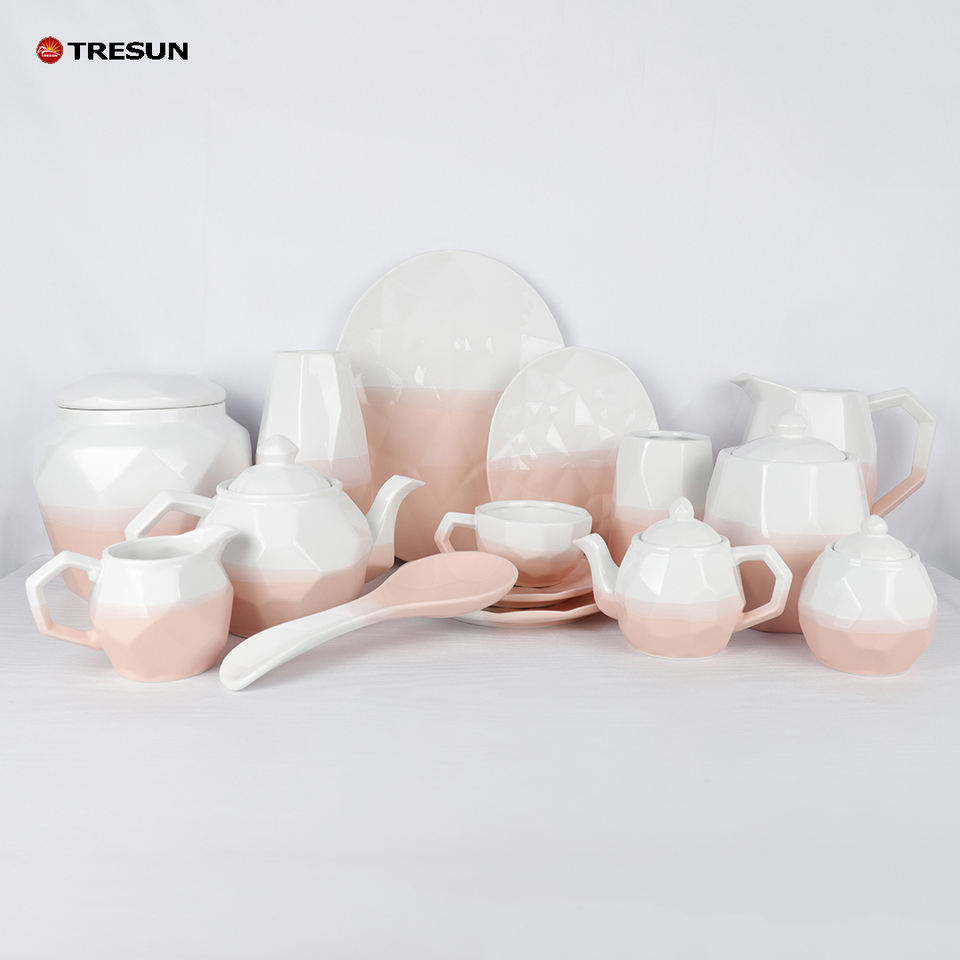 Juego de vajilla de dolomita, tazón de AZÚCAR rosa, tetera
