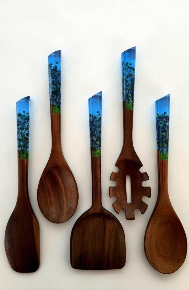 Cuchara y Tenedor para Servir Ensaladas de Resina, Utensilio de Cocina Resistente al Calor, Duradero, de Larga Duración, 2 Piezas Decorativas
