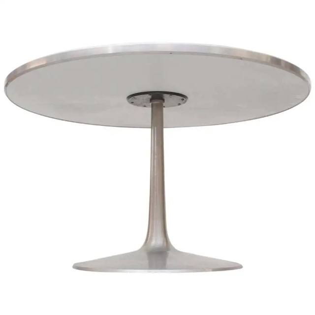 Mesa de comedor redonda con tablero blanco y base de metal cepillado muebles de cocina modernos vintage de mediados de siglo diseño minimalista