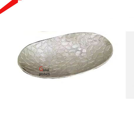Plato de servicio de acero inoxidable de metal de forma ovalada con acabado plateado de aspecto real para restaurante y bar de hotel