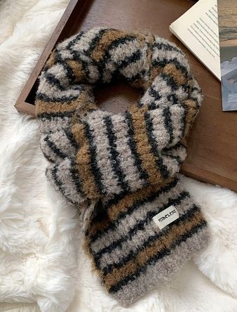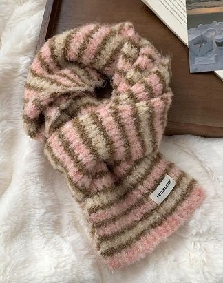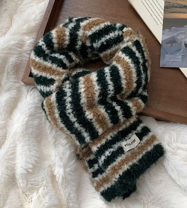 Bufanda de punto cálido engrosada con rayas de contraste coloridas