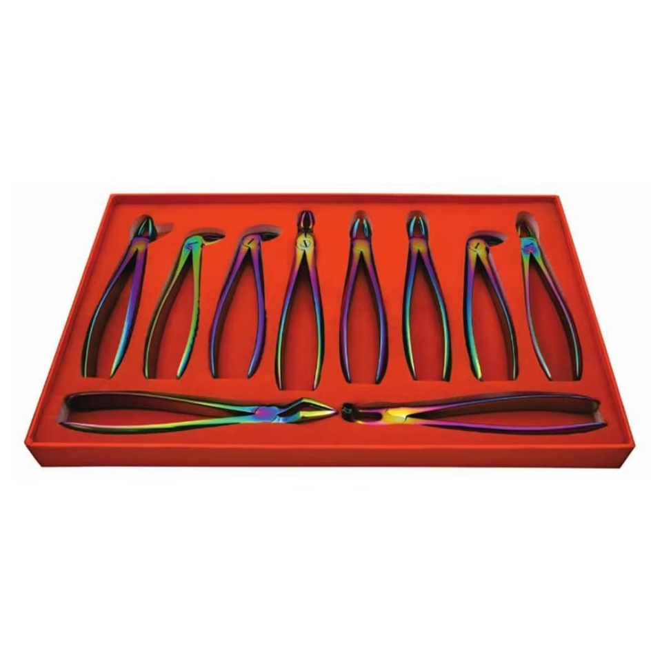 Juego de 10 Fórceps Dentales Manuales de Acero Inoxidable para Extracción Dental de Surgiright
