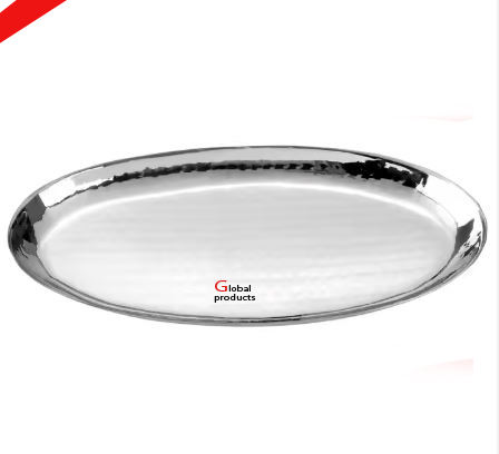 Bandeja de servicio de acero inoxidable de metal con acabado plateado de aspecto brillante simple para restaurante y bar de hotel