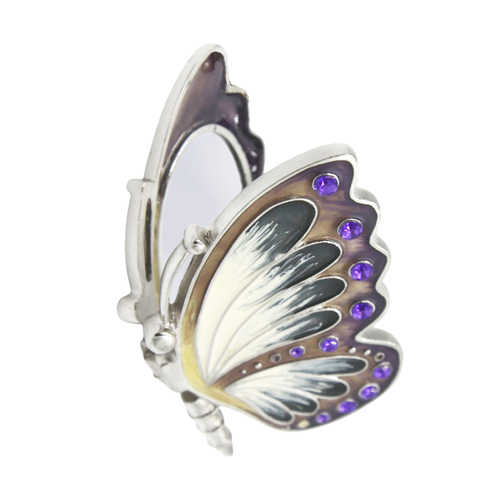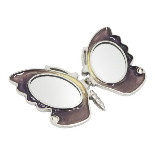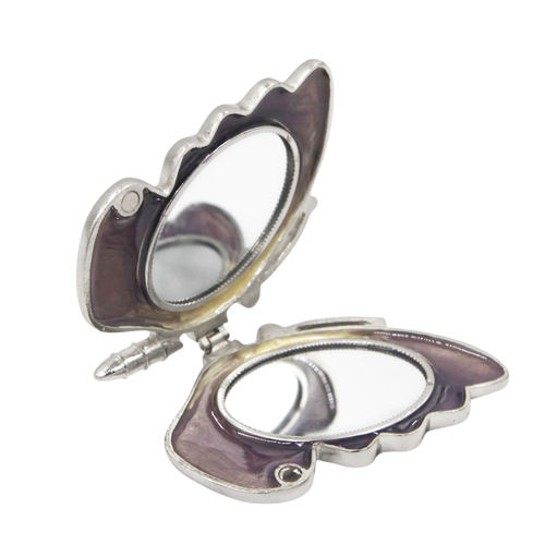 Espejo Cosmético de Bolsillo Plegable de Doble Cara, Pequeño, Metálico, Plateado, Estilo Vintage