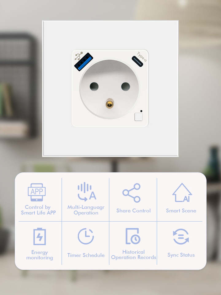 Interruptor táctil inteligente con wifi, enchufe de pared francés, diseño minimalista con aplicación Tuya, ampliable, buen precio, compatible con Alexa.