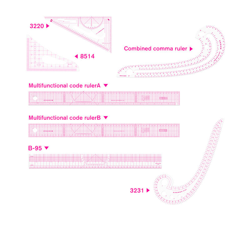 Regla curva de fábrica de fuente, regla a medida de varios estilos con patrón de ropa, regla de costura