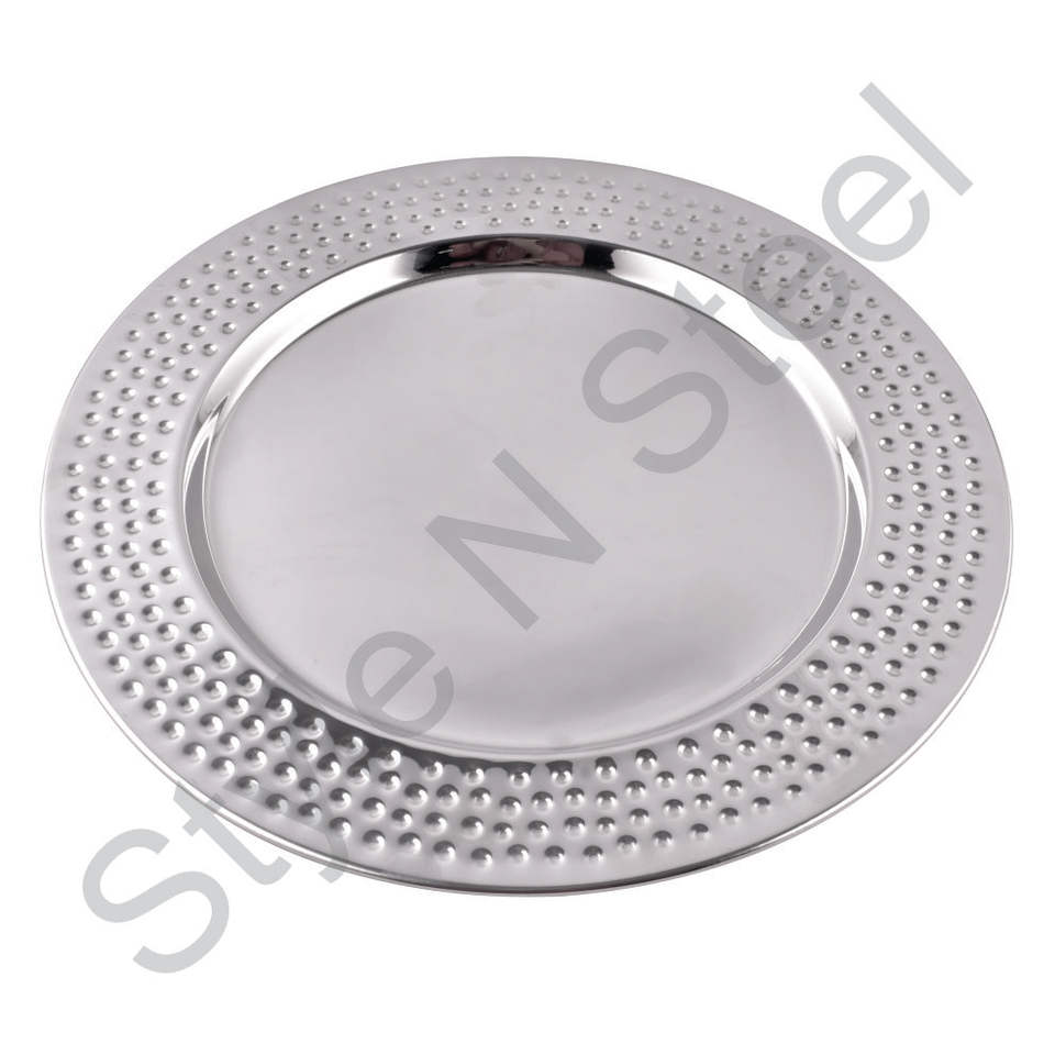 Placa de cargador de plata de acero inoxidable, placas de cargador con cuentas martilladas, juego de vajilla, cargadores de placa a granel